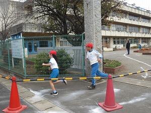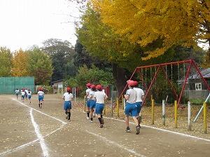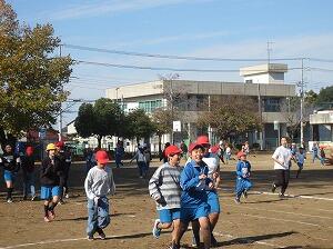 今週火曜日から業間の休み時間に、持久走練習を全校で始めました。今日はとても暖かい日でしたので児童は汗を流しながら走っていました。