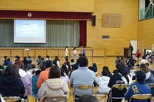 市長さんの最後のメッセージの一つに「あいさつ」の大切さについて話されました。人は一人では生きていけない、お互い助け合わなければならないが、その始まりはあいさつからである。あいさつからいい人間関係が始まるという児童にも分かりやすく素敵なお話でした。お忙しい中ありがとうございました。
