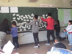 黒板にびっしり各学年の意見が ゆりの木学級 木小フェスティバル話し合い