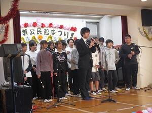 木間ケ瀬公民館の舞台にて発表 地域の方は感動していました