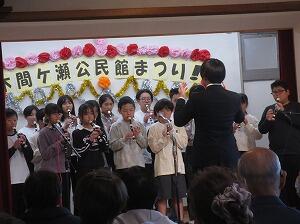 11月16日には、木間ケ瀬公民館祭りに5、6年生の有志の児童が参加してきました。木小フェスティバルでも披露したリコーダー「ハイホー」と2部合唱の「マイバラード」です。