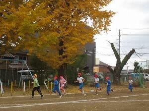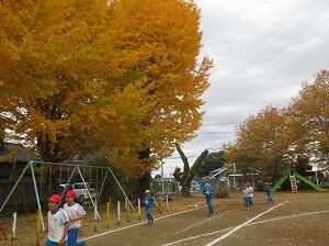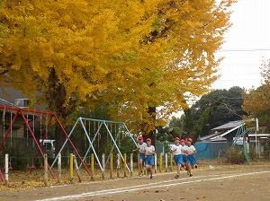イチョウも黄色く紅葉する校庭 自分の記録の更新で走ります