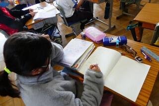 1年生は国語の学習です。