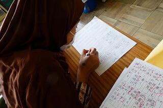 おうちの人からの手紙を真剣に見ながら書き進めていました。