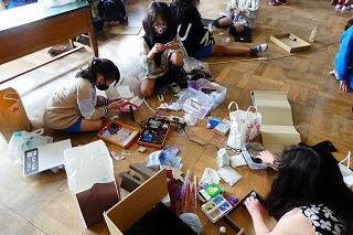 6年生は昨日に引き続き、卒業制作のオルゴールを作成していました。