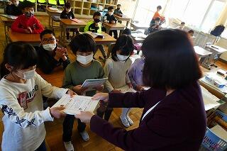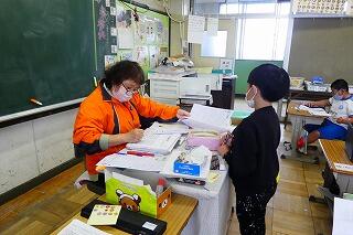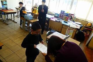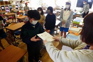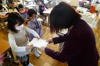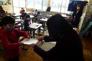 3年生は通知表を渡していました。
