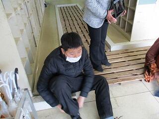 2年生は靴箱名前シールをはがしていました。
