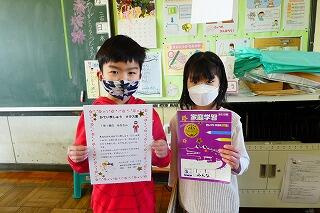 今日の家庭学習の表彰です。2年生の友達を6人表彰しました。