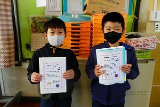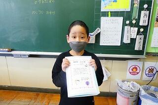 エネルギーのポスターの入賞と、欠席日数が6年間で5日以内の子に贈られる精勤賞です。