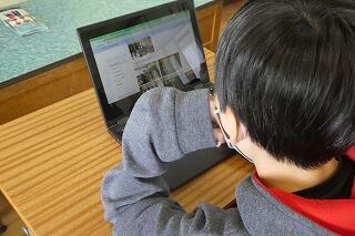 3年生はクロームブックを使って「eライブラリ」に取り組んでいました。