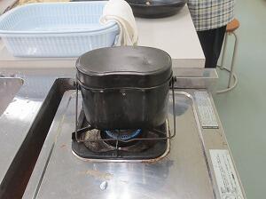 林間学校で行う飯ごうでお米を家庭科室で炊きました 教員も練習です