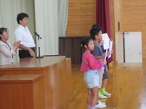 いよいよ明日から夏休みです。本日は全校児童集まっての集会が行われました。全校表彰もありました。その後は、夏休みに頑張ってもらいたいことや注意することの話をみんなで聞きました。皆真剣に話を聞き、これから始まる夏休みを想像していたようです。9月1日に全員元気に会いましょう!