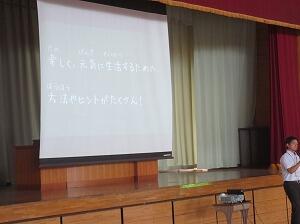 児童会からは夏休みの学習の話を 保健委員会から夏休みの生活習慣の話がありました