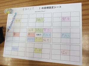 5年生 後期の目標をマンダラシートで考えます 廊下に掲示してあります 大谷選手も行ったとか・・・