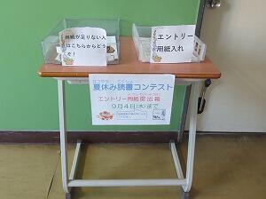 校長室前「夏休み読書コンテスト」提出BOX 4日締め切りです! 読書数掲示予定