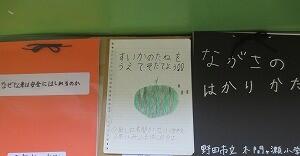 2・3年生の廊下にて 夏休みの自由研究 10日~11日の作品展で中身を見て下さい