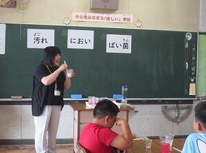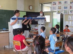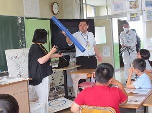先月30日には、北千葉浄水場に社会科見学に行った4年生ですが、本日は、野田市水道局の方を講師に迎え、水道に関する出前授業を受けました。4年生の社会科の学習が、公共のライフラインに関する物であり、水が多くの人の関わりや技術によってできていることを学んでいるところです。蛇口をひねって、安全で美味しい水が飲めるのも日本の自慢であり誇りです。