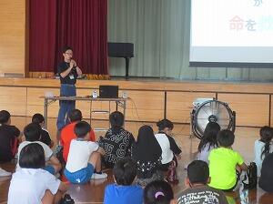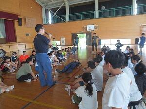 7月7日七夕の日、野田市消防本部の方を講師に招き、5,6年生が応急手当講習会に参加しました。6月に職員が行った講習会の内容と同じであり、命を守るために必要な知識と実践となります。皆真剣に話を聞き、実践をしていました。