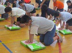 6月25日(金)昼休みに体育委員会の企画で「みんなで運動しよう会」という集会が行われ、全校児童で実施しました。任意ですが、昼休みにたくさんの児童が体育館に集まりました。みんな必死に運動していました。とてもいい児童の企画です。