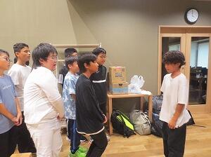 応急手当のキッドを一人一つずつ渡され、構え方から学びます