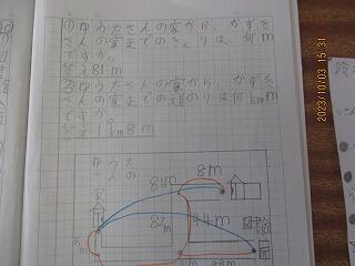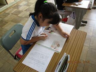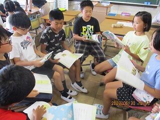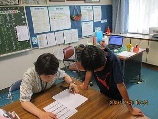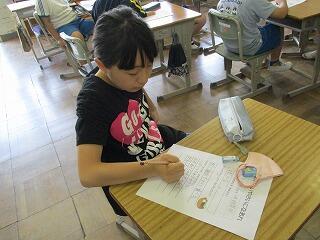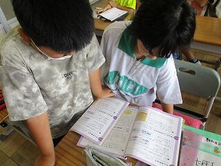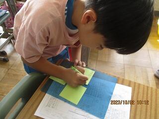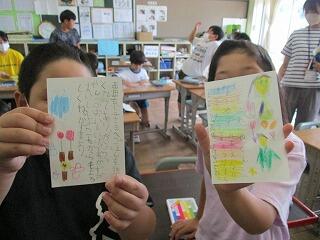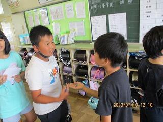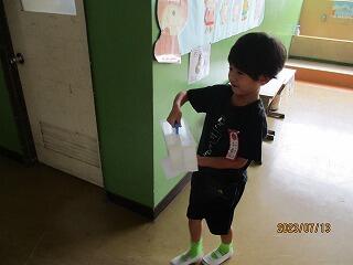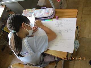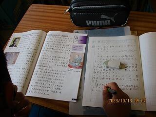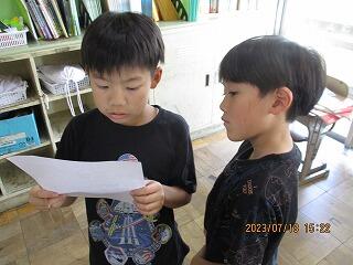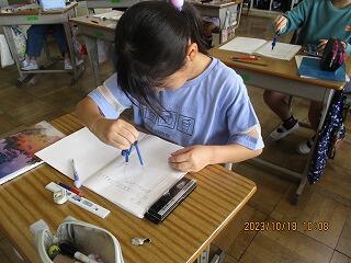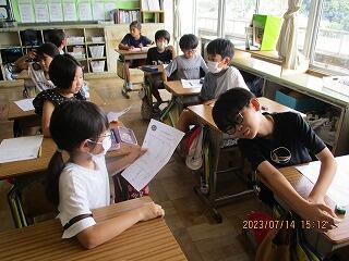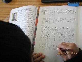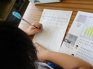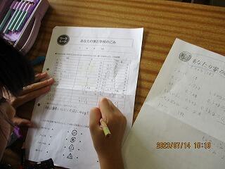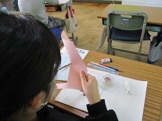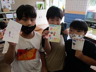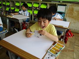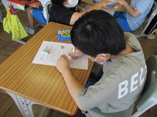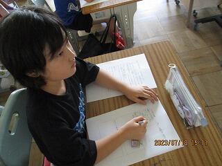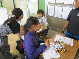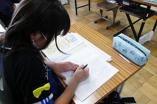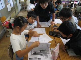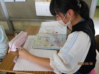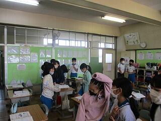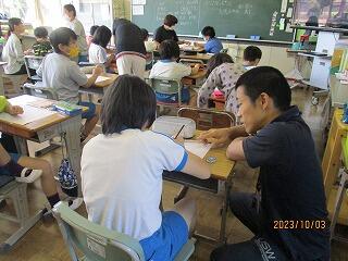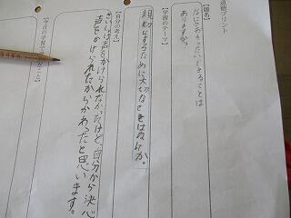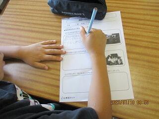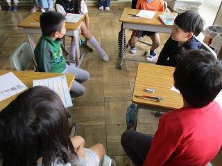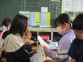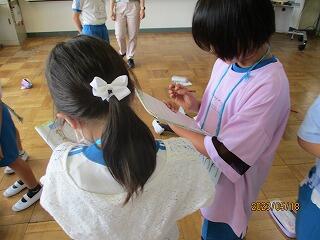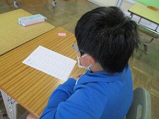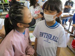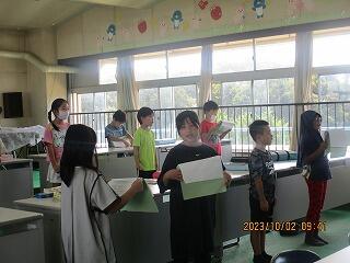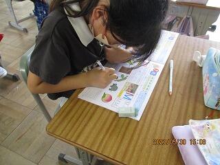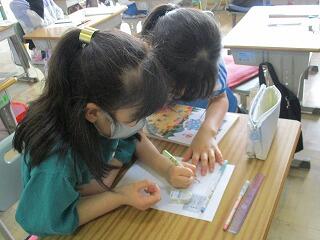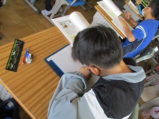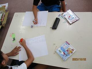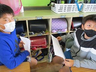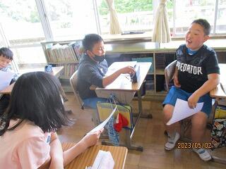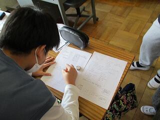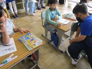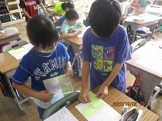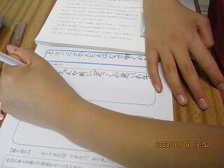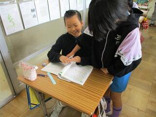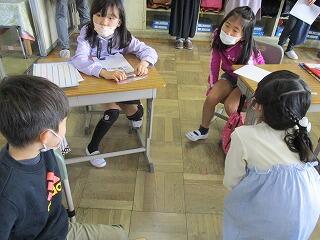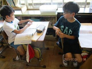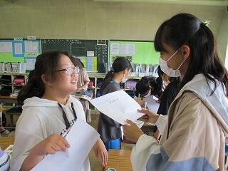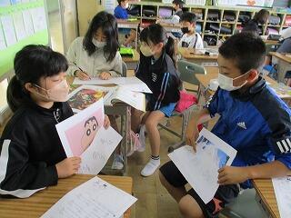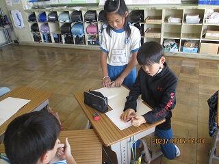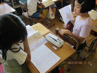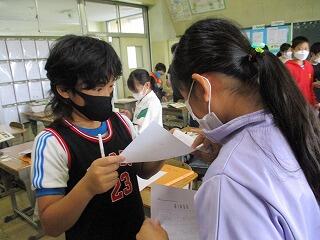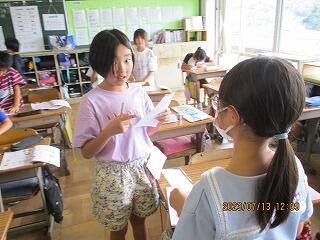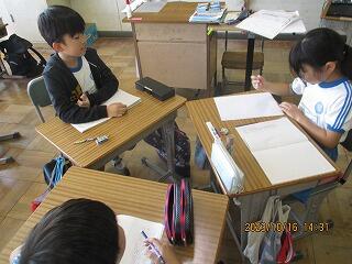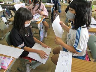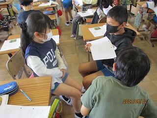 自分の考えを書いた後、友達と交流をしました。