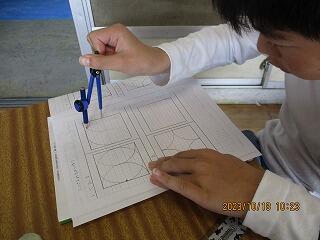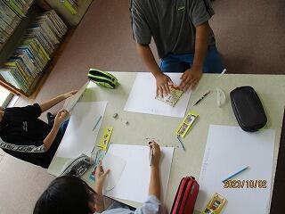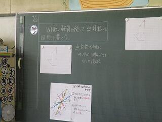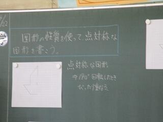 図形の性質を使って点対称な図形を描く活動を行っていました。