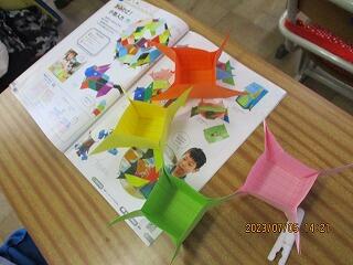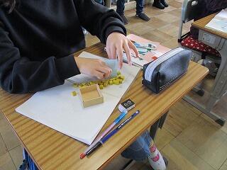 直方体や立方体を実際に作る活動を通して、かさの大きさの比べ方を考えました。
