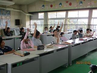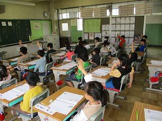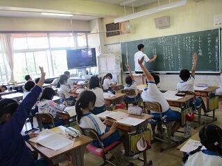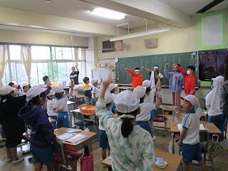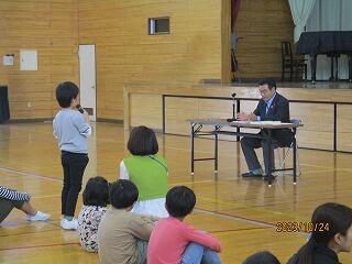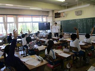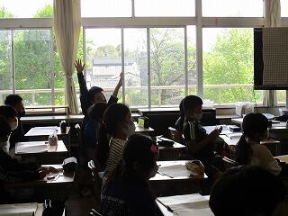 質問コーナーでは、たくさんの児童が手を挙げ質問しました。