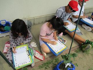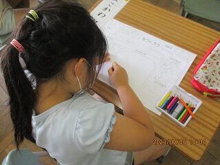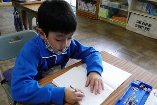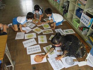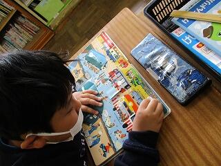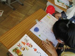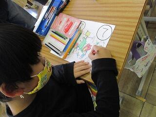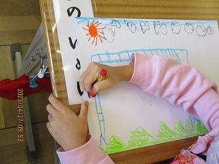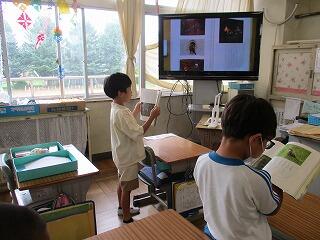 挿絵を見て、だれがどこでどんな遊びをしているのかを見つけ発表していました。