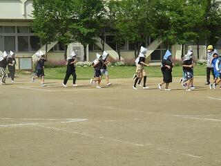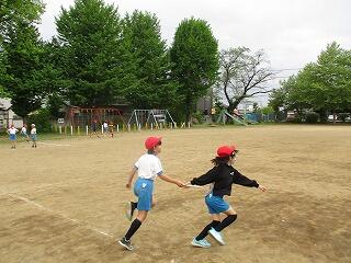 4年生の体育の時間は、リレーをしていました。試行錯誤を繰り返し、バトンパスがだんだんスムーズにできるようになってきていました。