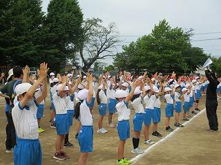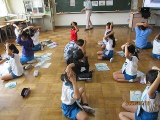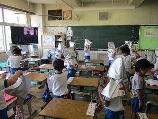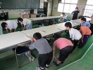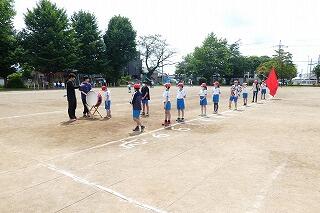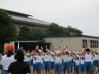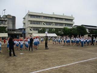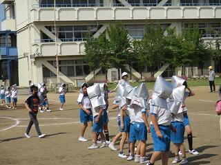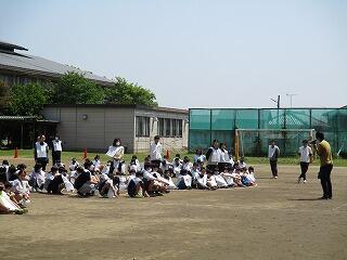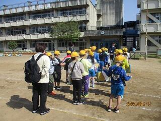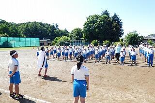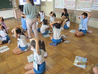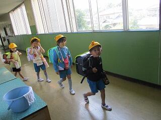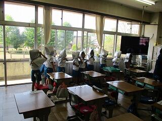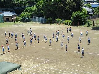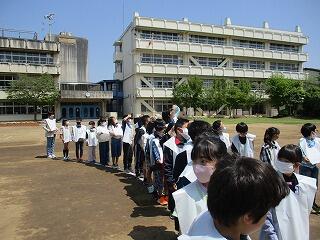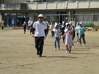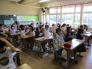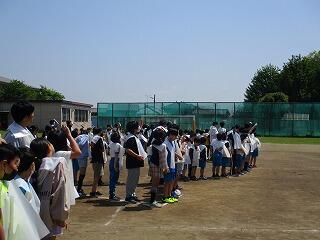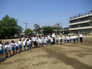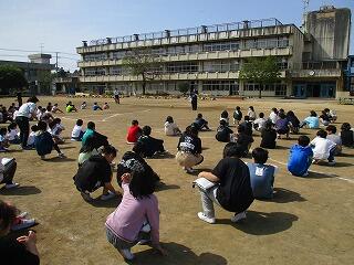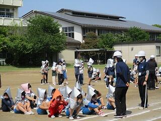 校庭に全員が集まったのが3分9秒でした!