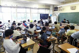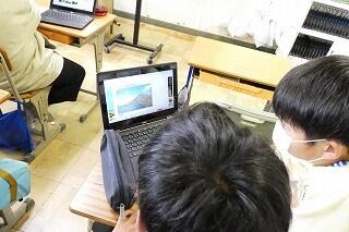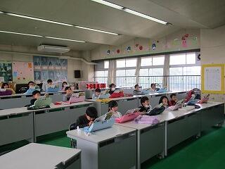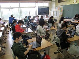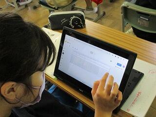 4年生の社会では、千葉市の様子についてグーグルマップの機能を使って確認していました。