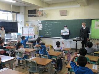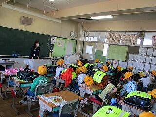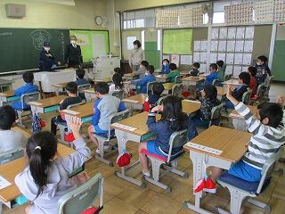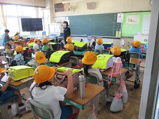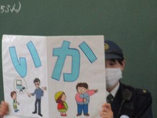 1年生は、野田警察署の警察官を招いて、防犯教室がありました。