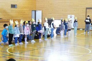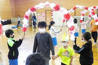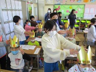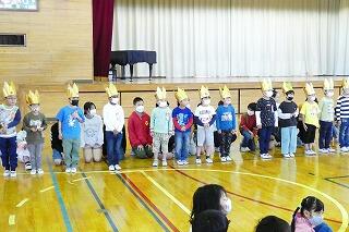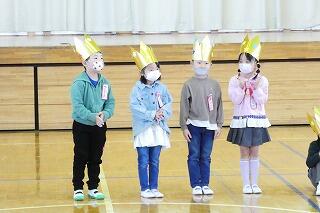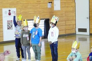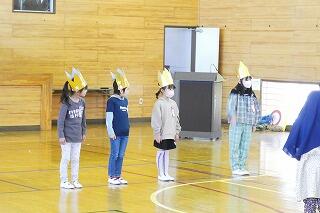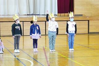 迎える会で1年生がかぶる王冠を、4年生が届けてくれました!