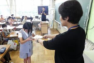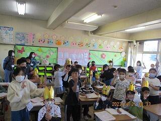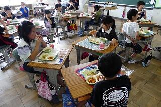 その後、給食の時間には、市長さんと各学級の代表者とで会食も行いました。