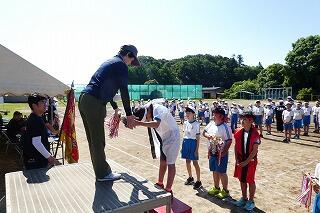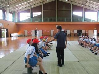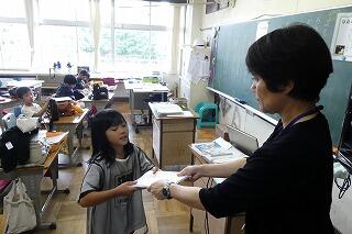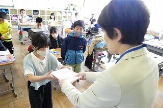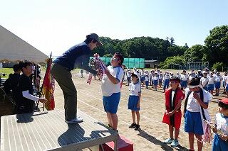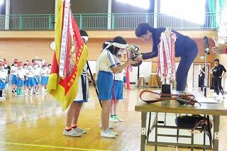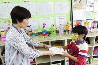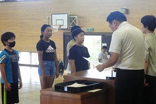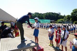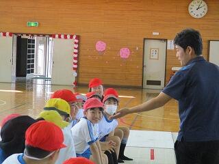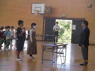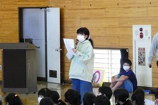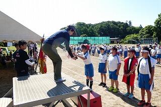 代表児童は警察官にお礼に言葉を立派に言うことができました。