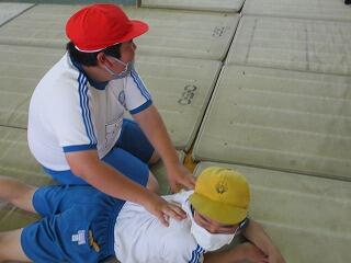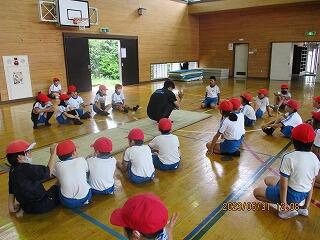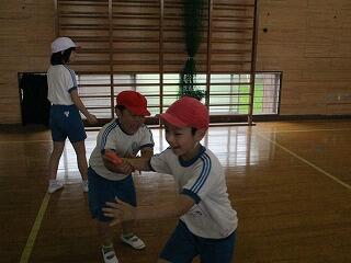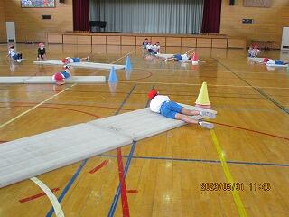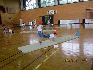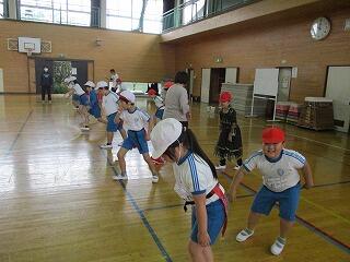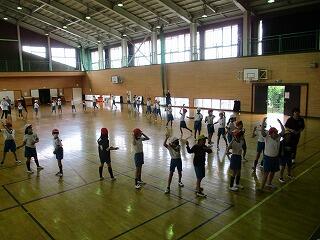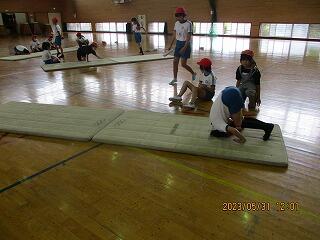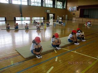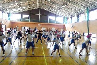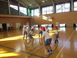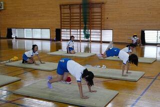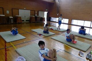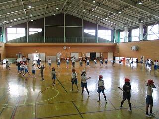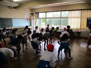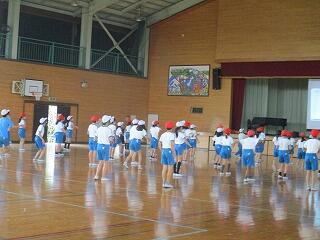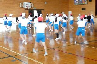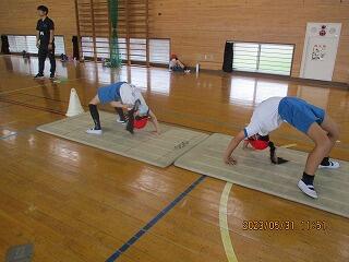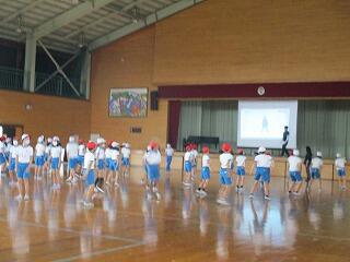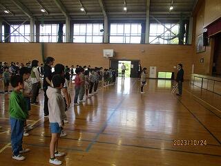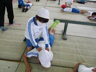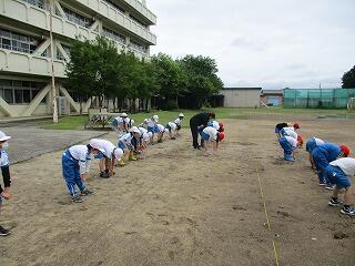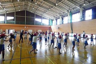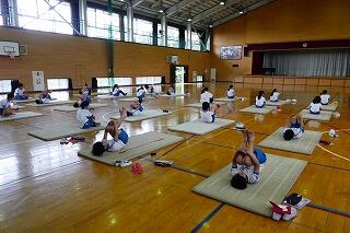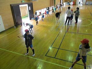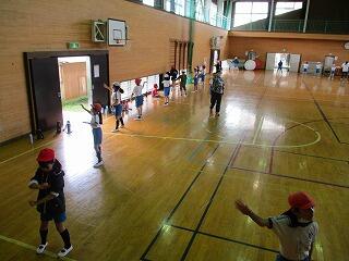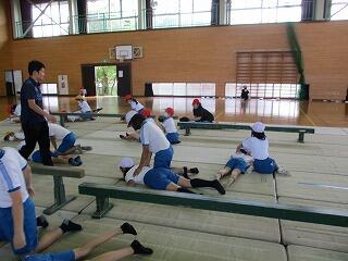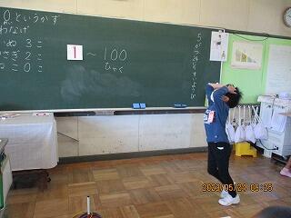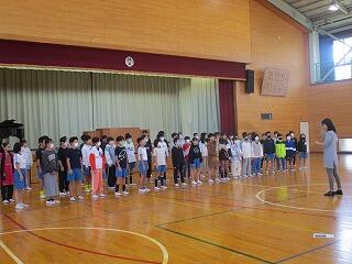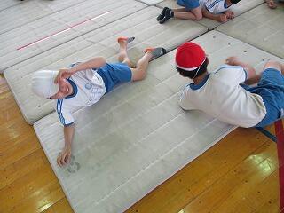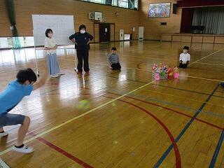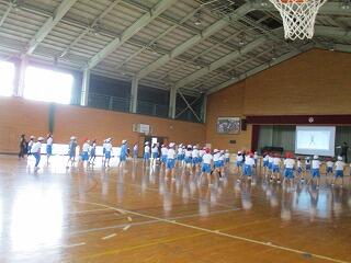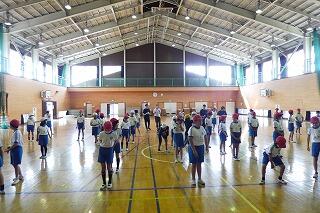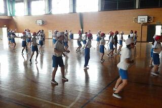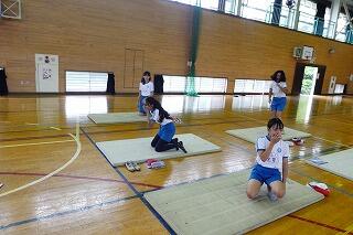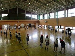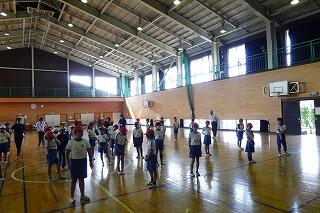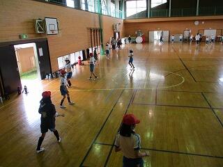 1・2年生は、体育館で体力テストの続きをしました。