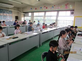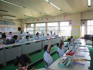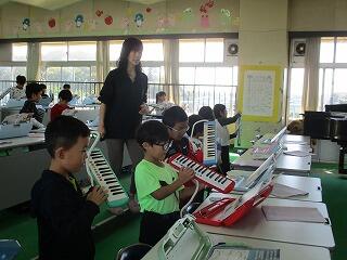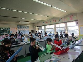 鍵盤ハーモニカを持って演奏するのに慣れなかったり、うまく演奏できなかったりする児童もいますが、練習を重ねて上手になるよう頑張ってくださいね。