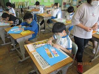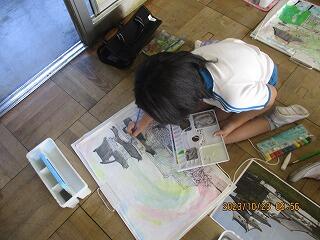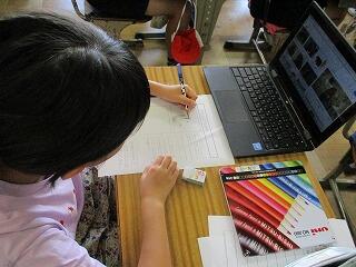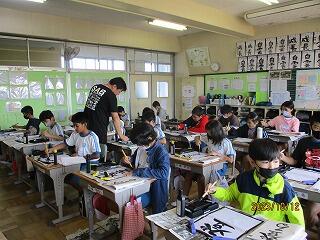 3年生では、子ども県展に向けての絵を描いていました。