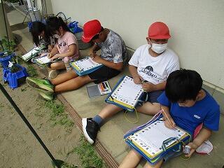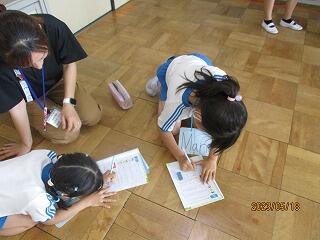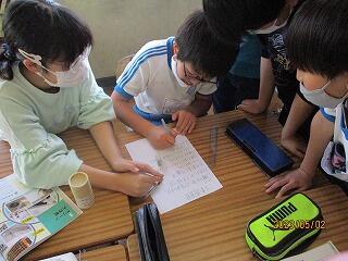どんな質問をするとその場所のことがわかるのかグループの友達と相談しながらメモを書いていました。