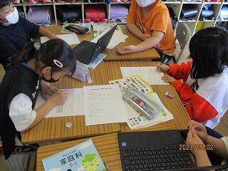 ゆりの木学級の3年生は、交流学級のクラスに入り、校外学習の計画を一緒に作っていました。