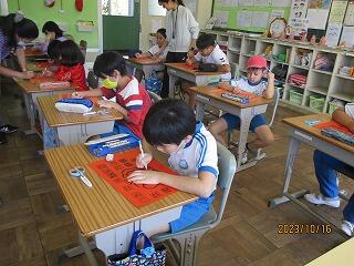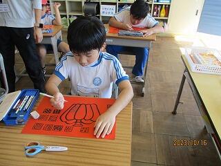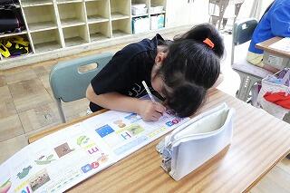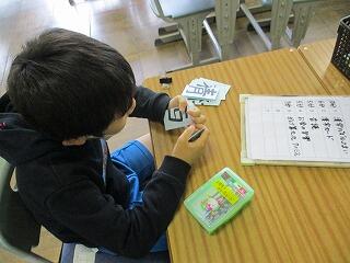 漢字クイズをイラストカードを参考に、自分だけの問題作りをしました。