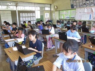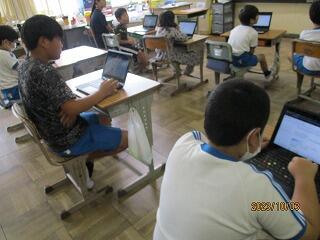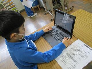 5年生の眼科検診後、みんなが来るまで静かにタイピングの練習をしたり、eライブラリーや本を読んだりしたりしました。
