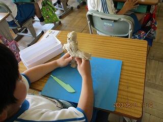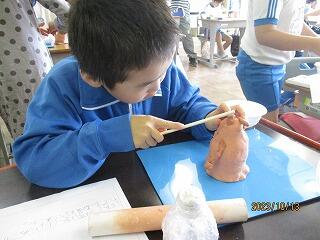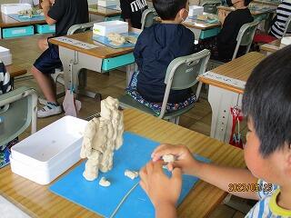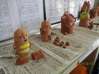 ゆりの木組では、「はにわ美術館を開こう」ということで作製した友達の作品を鑑賞しました。