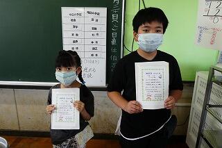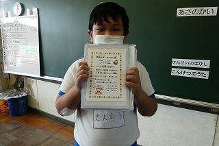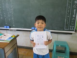 今日も自主学習ノートを終えた子を、表彰しました!