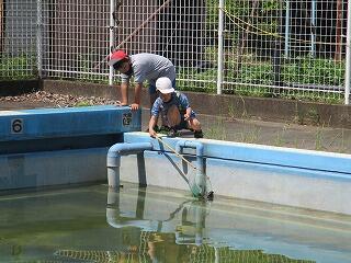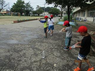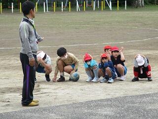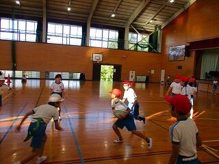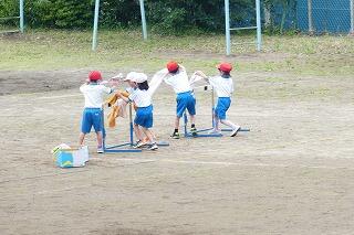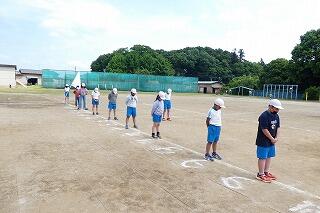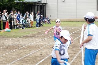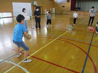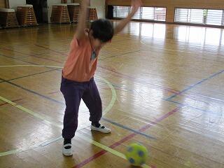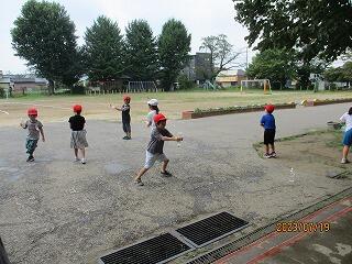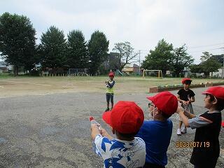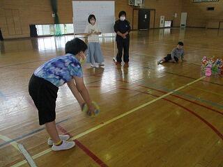 うでを高く上げ遠くへ飛ばすよう頑張っていました。