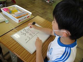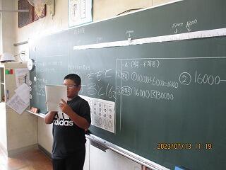 みんなの前で計算の仕方を大きな声で説明していました。