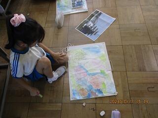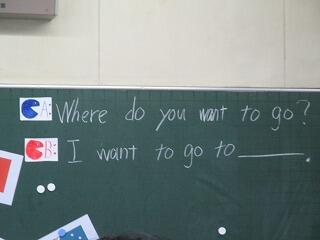 5年生の外国語では、道案内をするための方向を示す指示や建物の名前を練習しました。