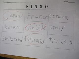 ペアになり、言われた単語を素早く指さすゲームをして建物の単語に慣れました。