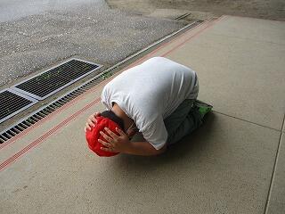 不審者に出くわしたら大声で助けを求める練習をしました。